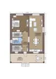 F-1016 - План одноэтажного дома 9 на 10, площадью 90 м² с террасой и 1 спальнями