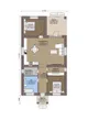 F-7388 - План одноэтажного дома 9 на 15, площадью 100 м² с террасой и 2 спальнями